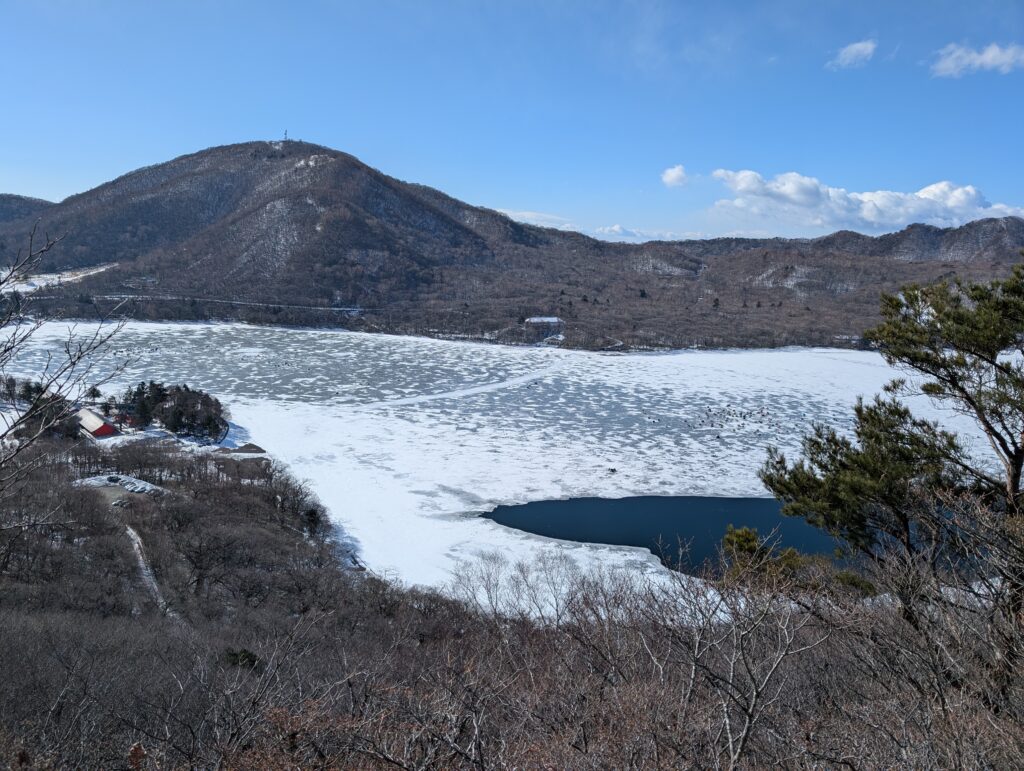 わっせわっせと20分くらい登って振り返ると赤城大沼がドン!