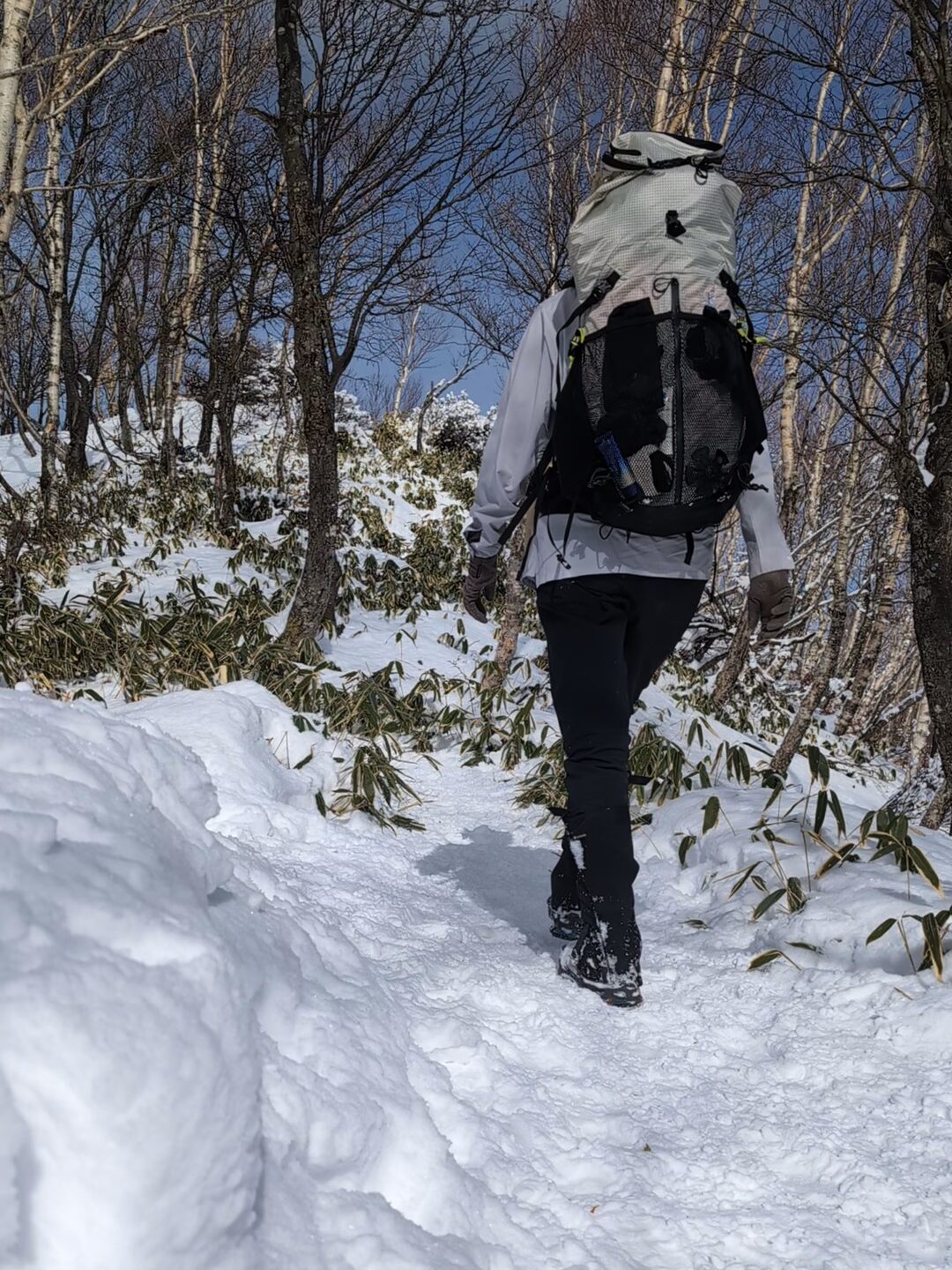 下山時はおニューのトレッキングポールも出そうと思ったけど、なんか嫌やなってことで気合いで降ります。アイゼンも持ってきたし荷物はそこそこ重い。