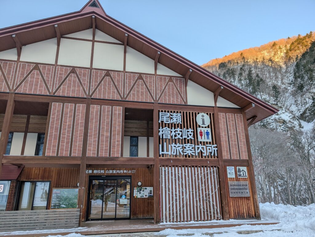 登山口のトイレは冬季閉鎖中なので、駐車場から少し離れた案内所のトイレを使わせていただく。