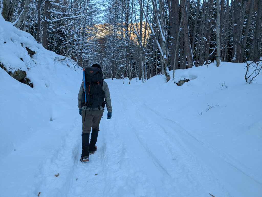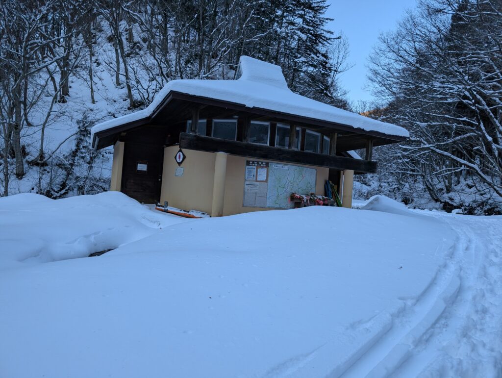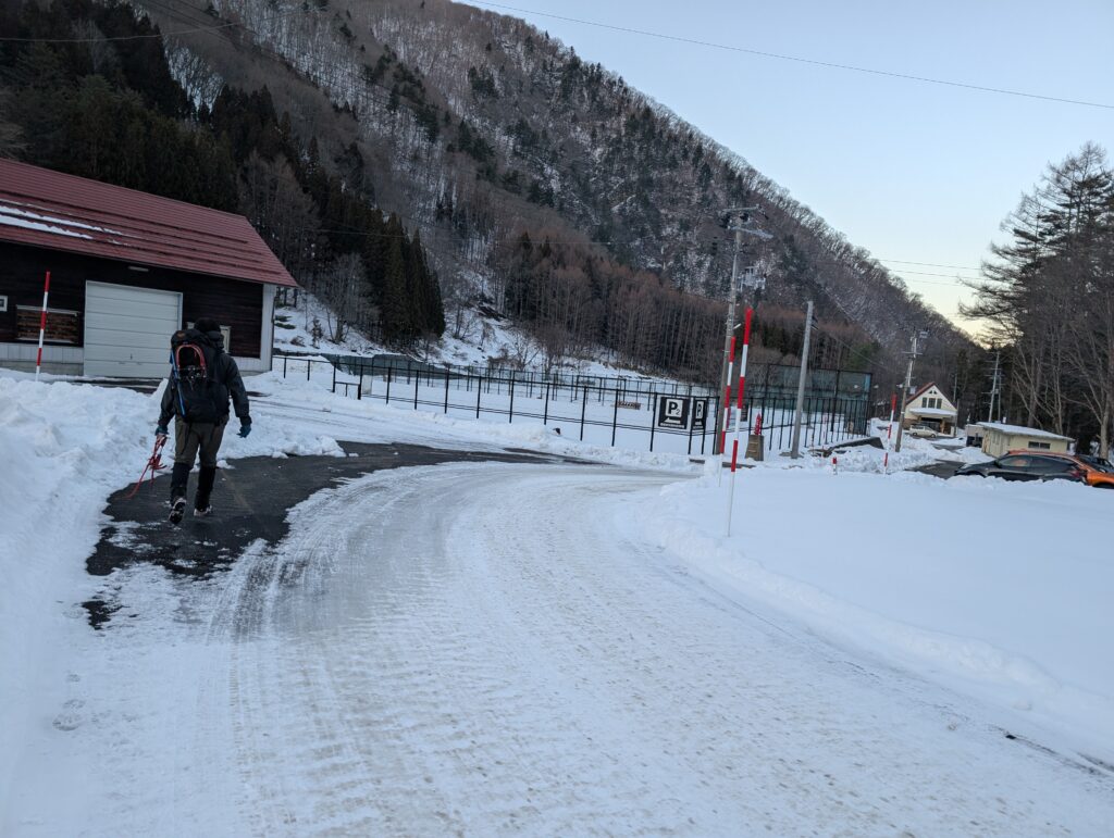 厳冬期になると登山口から30分ほど下の村営グランド駐車場へ車を止めることになります。