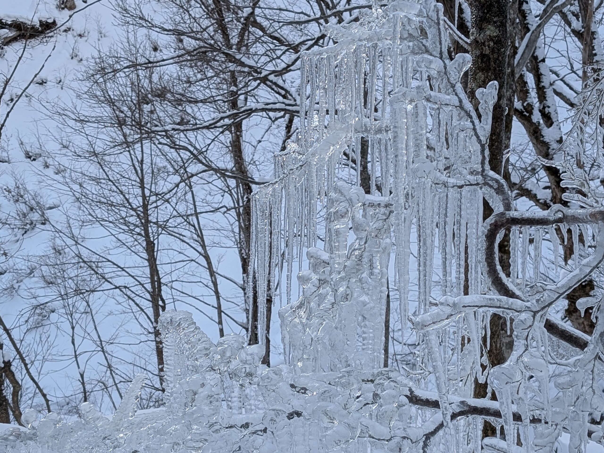道中、配管から水が噴き出していて、それが氷の芸術になっていた( ´ ▽ ` )