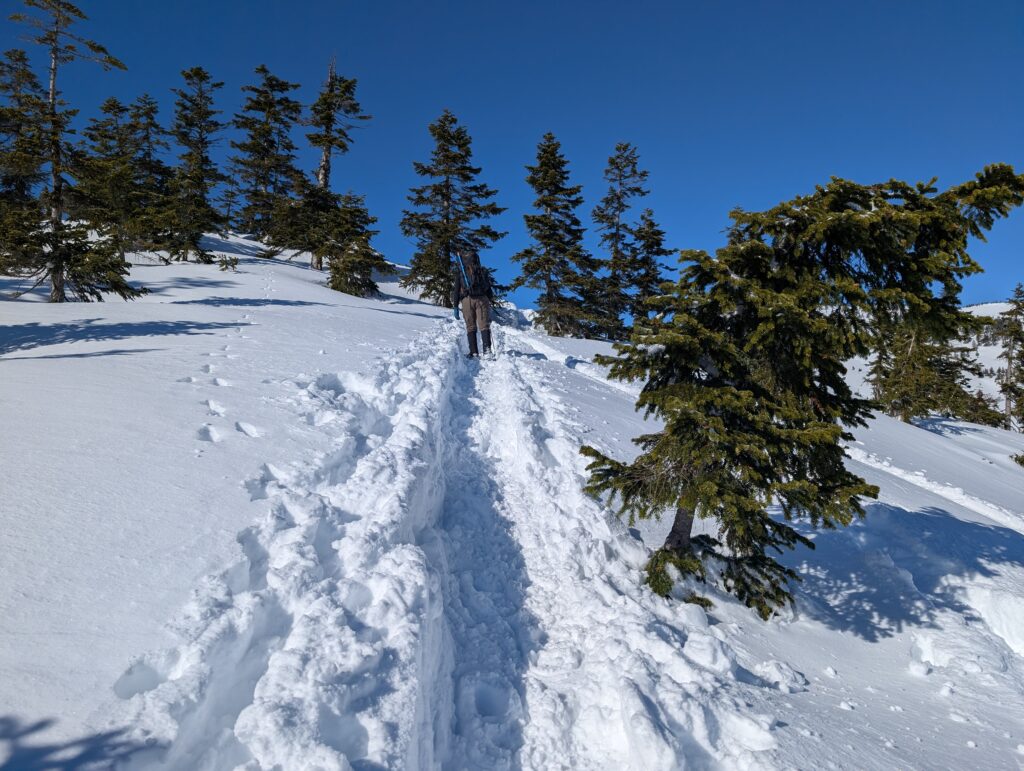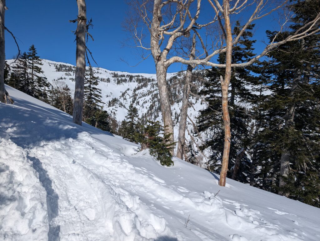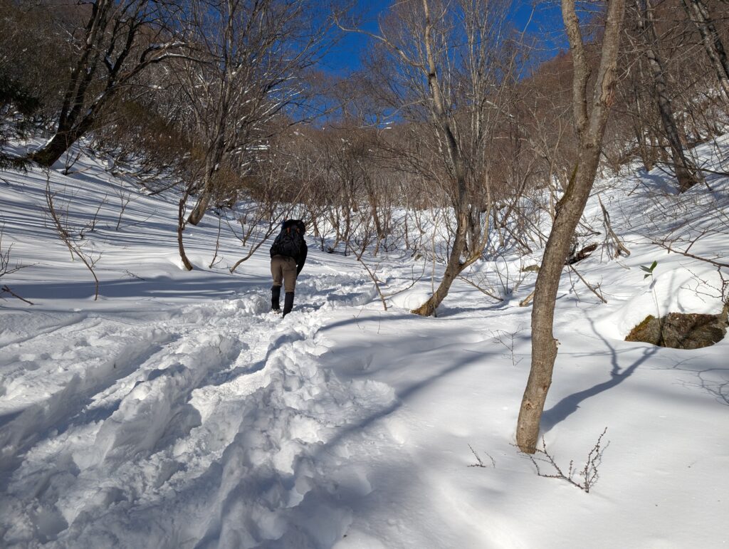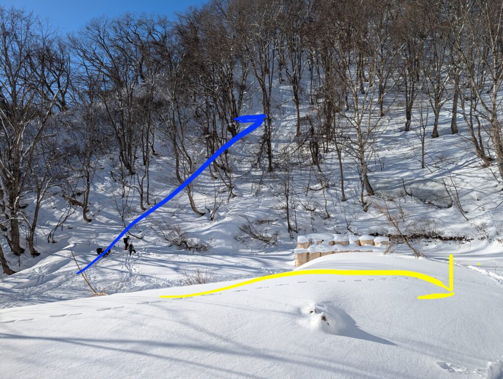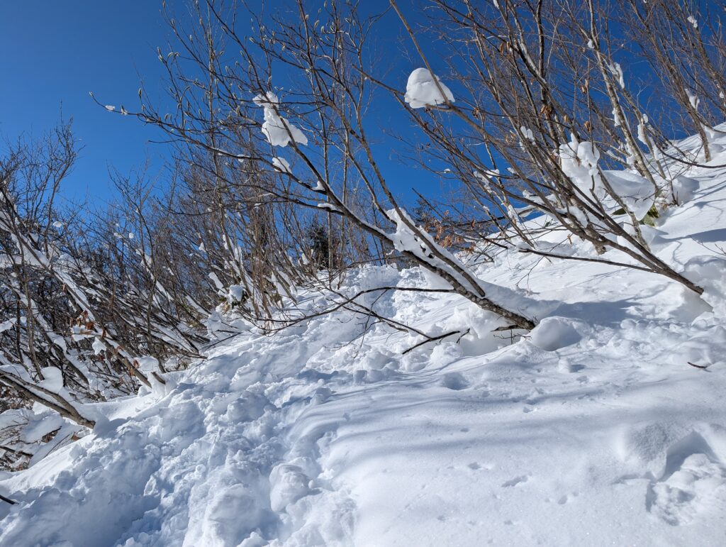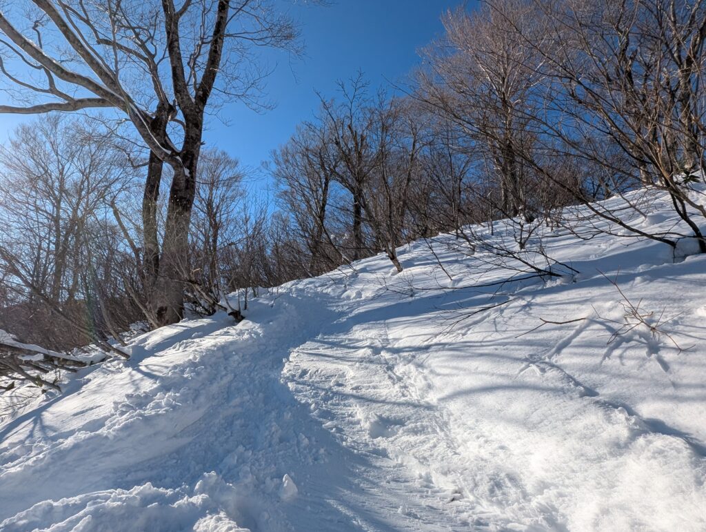 先人たちがつけた冬山のショートカットがあるのでそちらを利用(トレースと地図をみて慎重に)