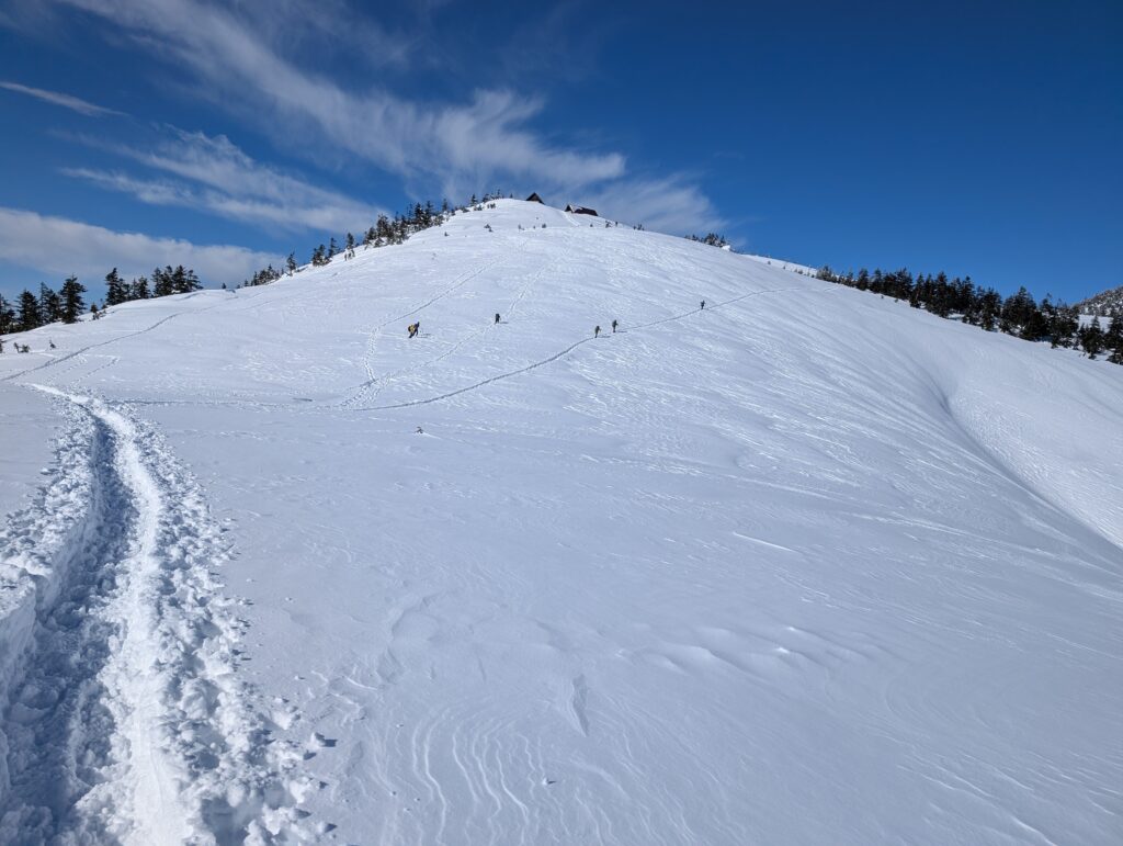 この山はスキーの方も登っていたので、みなさんスイスイ滑ってました。
