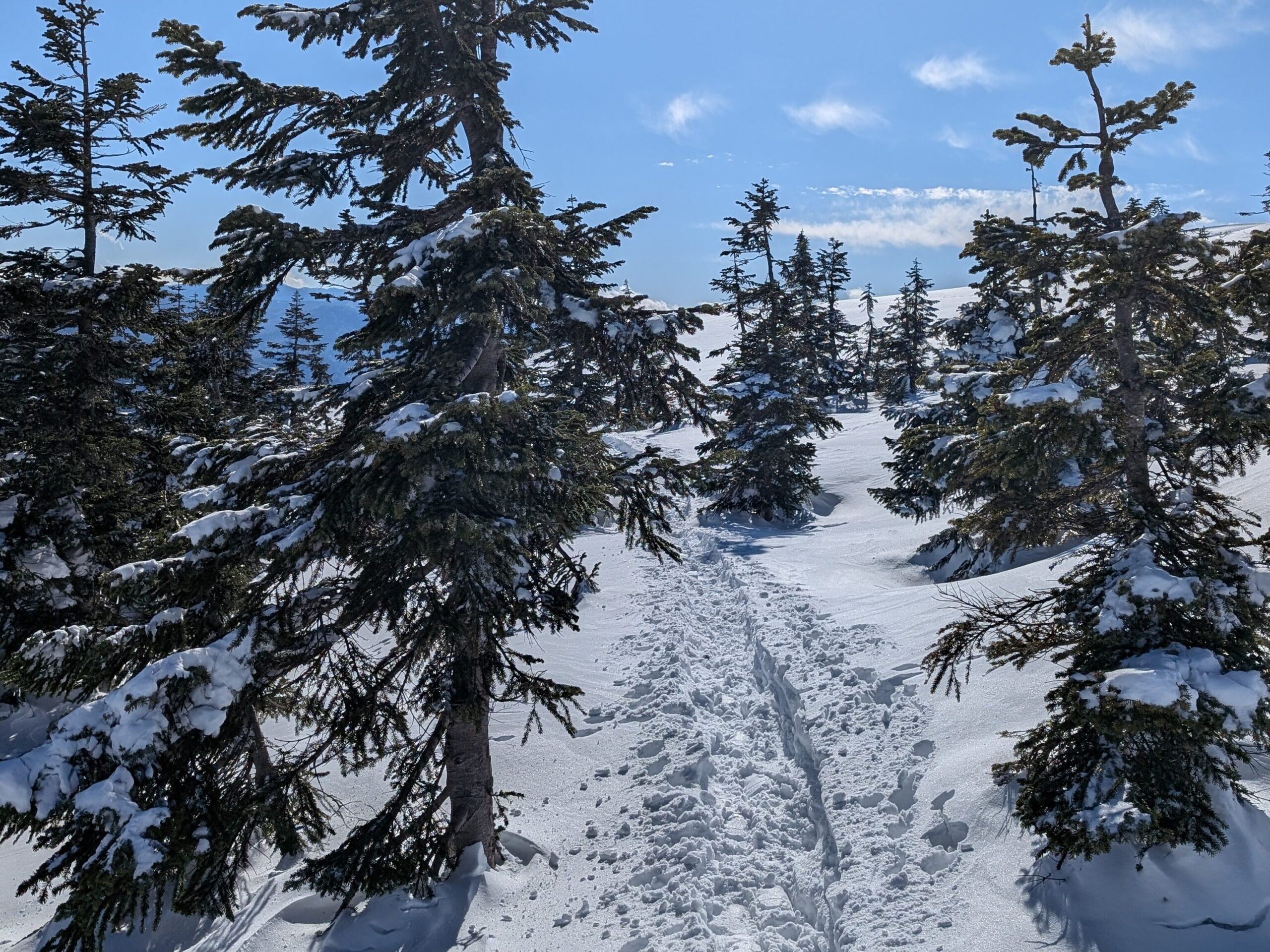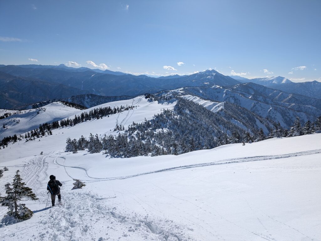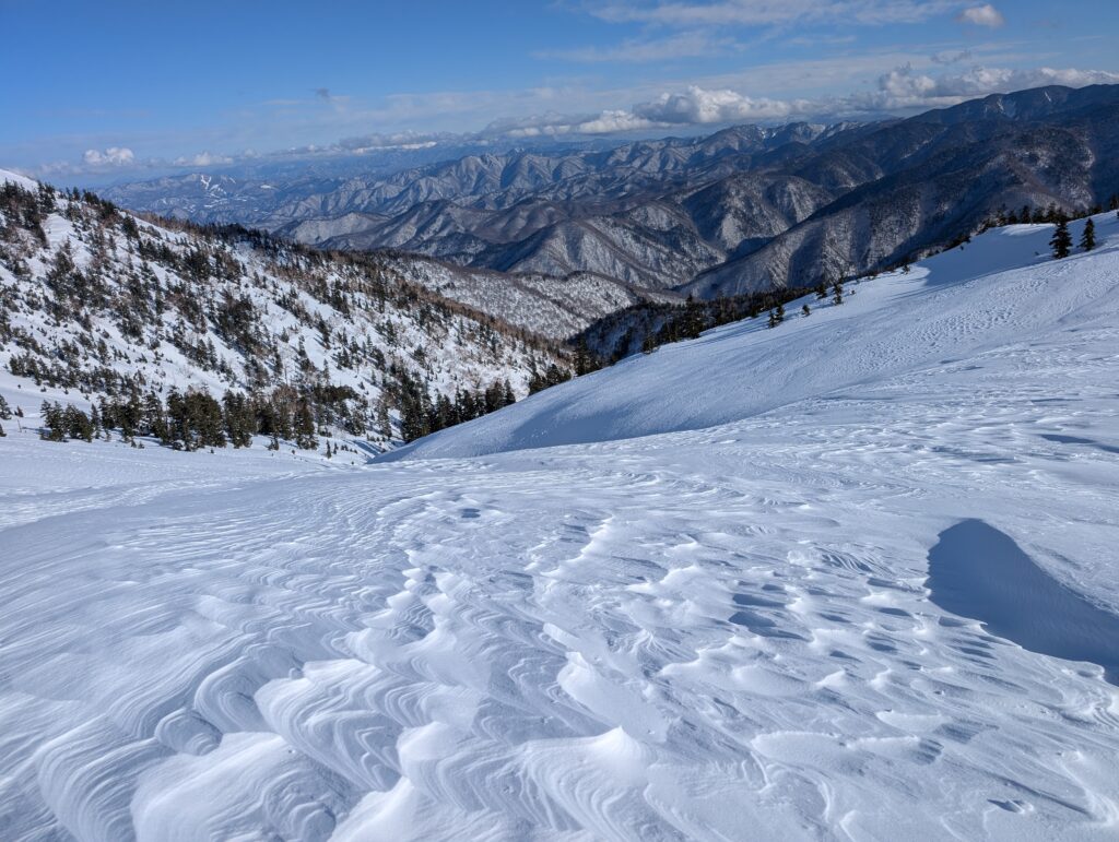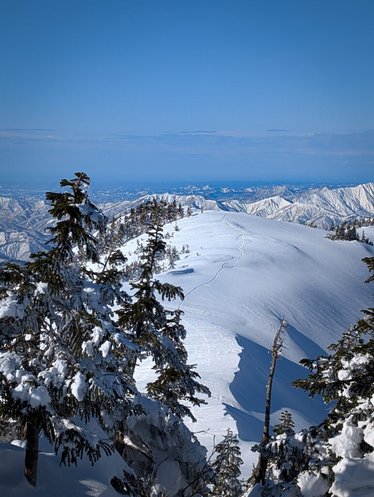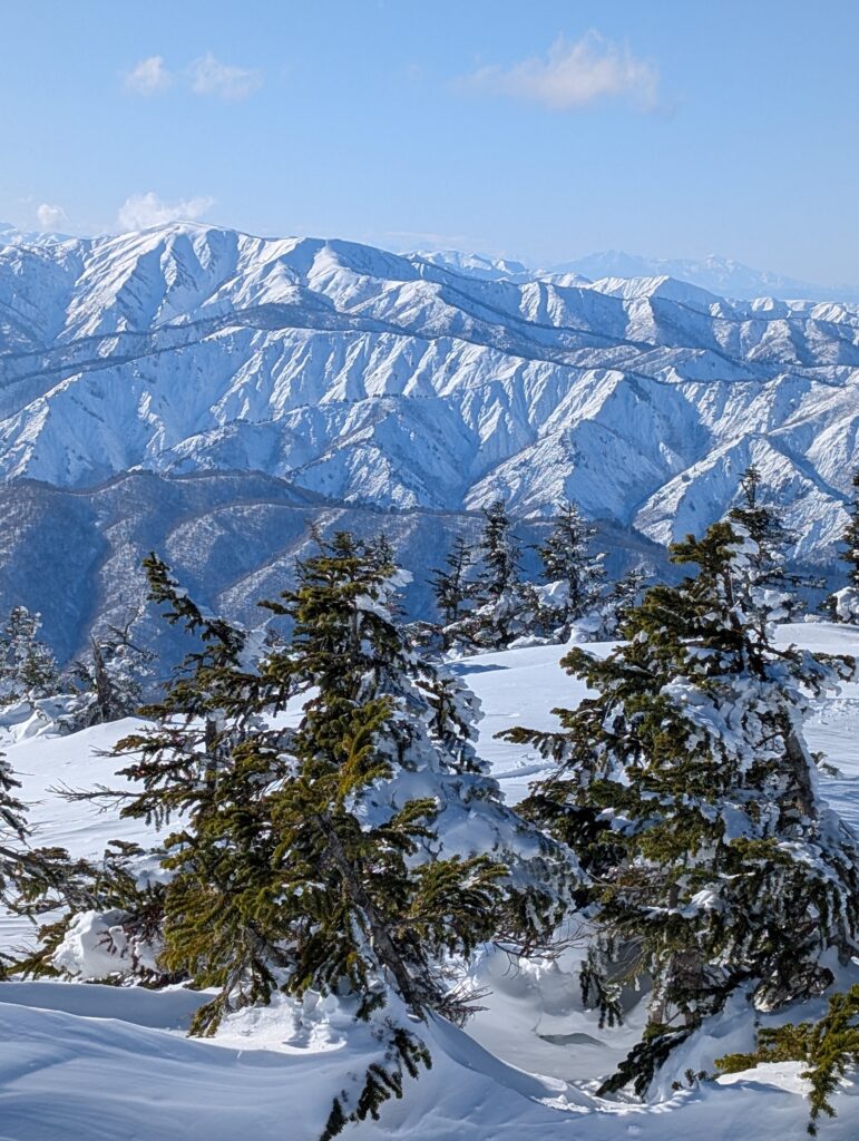 山頂からの景色はこんな感じ↓山深い雪の景色を楽しめるのは
