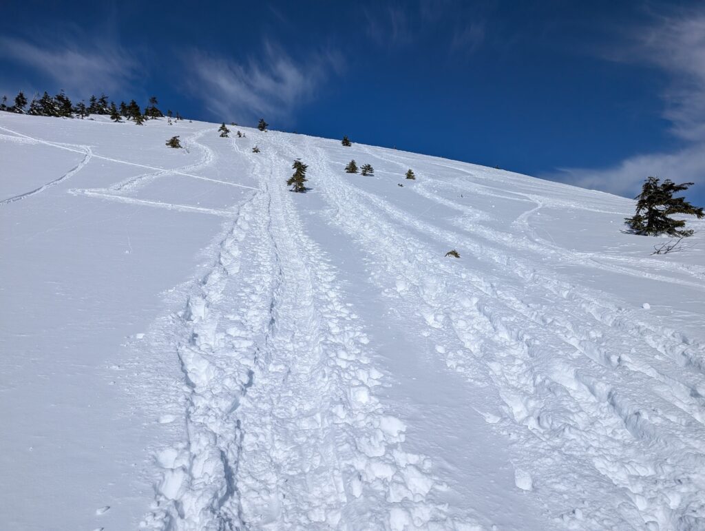 まあ、スキーの人も来る雪山なので道なき道を進んでいる方もいます。